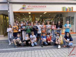 Lesend kann jeder die Welt erobern, in ferne Galaxien reisen, verschiedene Zeiten und Menschen kennenlernen – zum Beispiel die Wasserhexen Iva und Samo, die Hauptfiguren in dem neuen Band von "Ich schenk dir eine Geschichte" zum "Welttag des Buches". Die Klassen 5d und 5f nahmen diesen Tag zum Anlass, das "Bücherzimmer" am Roßmarkt zu besuchen, um nicht nur das Büchergeschenk in Empfang zu nehmen, sondern eine Buchhandlung kennenzulernen.