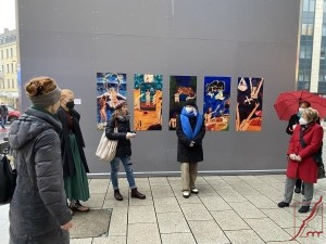 Am vergangenen Samstag, dem 04.12.2021, war es endlich soweit: Die Bildadaptionen des Kurses „Bildnerische Praxis“ der Klassenstufen 11 und 12 des Karl-Theodor-von-Dalberg-Gymnasiums, welche eigens zur aktuellen Ausstellung „Kirchners Badende. Einheit von Mensch und Natur“ des KirchnerHaus-Museums entstanden, konnten in kleinem feierlichen Rahmen am temporären Kirchner-Kubus, einem Projekt der TH Aschaffenburg, eröffnet werden.