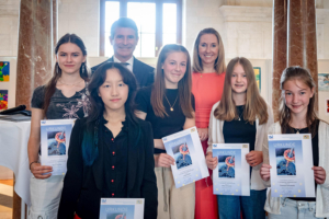 Am Samstag, den 8. Juni 2024, waren unsere zwei Bundespreisträgerinnen Sara aus der 9a und Jiayi aus der 10a zum Festakt zur Auszeichnung der bayerischen Bundessiegerinnen und Bundessieger des 71. Europäischen Wettbewerbs 2024 um 13 Uhr in die Staatskanzlei nach München eingeladen.