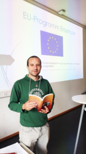 Eine Lesung von Philipp Heilgenthal am Dalberg-Gymnasium - Die EU ist zur Zeit in aller Munde. Zwanzig Jahre Osterweiterung konnte gefeiert werden, am 09. Juni finden die Wahlen zum Europaparlament statt, bei denen in Deutschland erstmals auch Sechzehnjährige ihre Stimme abgeben dürfen. Am 09. Mai wird außerdem anlässlich des Europatages des Schuman-Plans gedacht, der als Grundlage der Europäischen Integration gilt. Einen Tag zuvor war der Autor Philipp Heilgenthal am Dalberg-Gymnasium zu Gast und das Thema seiner Lesung war wenig überraschend Europa.