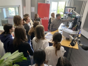 Am Montag, dem 15. Mai, besuchte die Klasse 9c das Funkhaus Aschaffenburg. Die am Schüleraustausch mit Spanien beteiligten Schülerinnen und Schüler nahmen zeitgleich ein Interview beim Radio Klangbrett auf. Da bot es sich doch an, mit dem Rest der Klasse eine Führung durch die Räumlichkeiten von Radio Primavera zu machen.