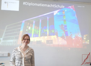 Das Projekt „Diplomatie macht Schule“ - Seit einiger Zeit bietet das Auswärtige Amt das Projekt „Diplomatie macht Schule“ an. Im Rahmen dieses Angebotes kommen Diplomaten an Schulen und informieren über ihre Arbeit. Am 08. April 2024 war Hannah Laubenthal in zwei Sozialkunde-Kursen der 12. Jahrgangsstufe des Dalberg-Gymnasiums, um ihren Beruf vorzustellen und Fragen der Schülerinnen und Schüler zu beantworten.
