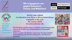 Macht alle mit und engagiert euch gegen Gewalt an Frauen und Mädchen! Auch eure Familienmitglieder dürfen die Strick- oder Häkelnadel in die Hand nehmen und ihrer Kreativität freien Lauf lassen!