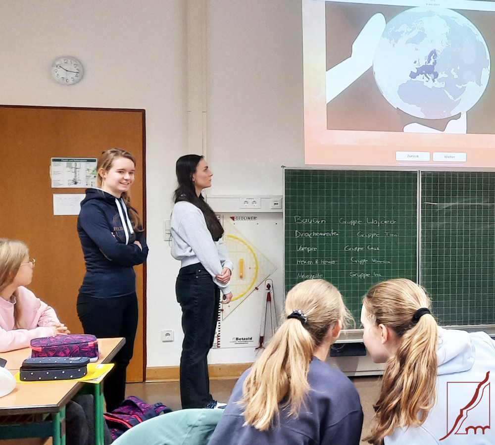 In den vergangenen Tagen begaben sich die Schülerinnen und Schüler der Klassen 7b und 7d in die Phantasiewelt von Nafasia, die von Vampiren, Hexen und Hexern, Drachenreitern und anderen magischen Wesen bevölkert wird. Im online-Planspiel „Fabulous Council“schlüpften sie in die Rollen von Delegierten, die über die Zukunft dieser Welt entscheiden konnten, um sie vor dem Fluch eines bösen Königs zu retten. Angeleitet von den Juniorbotschafterinnen und Juniorbotschaftern für das Europäische Parlament debattierten die Klassen über verschiedene Vorschläge bei Abstimmungen. Dabei erkannten sie, dass es nicht darum geht, die eigenen Interessen ohne Rücksicht durchzusetzen, sondern auch die Interessen der anderen Gruppen zu berücksichtigen und Kompromisse zum Wohl aller einzugehen. Auf spielerische Art und Weise wurde so deutlich, was Politik bedeutet und wie Entscheidungen zustande kommen. Am Ende wurde dann noch die Verbindung zur Europäischen Union, sozusagen einem Nafasia in der Realität, hergestellt. „Fabulous Council“ ist unterhaltsam und lehrreich zugleich und wird bestimmt auf in Zukunft eine erste Begegnung mit der Europäischen Union für Schülerinnen und Schüler darstellen.