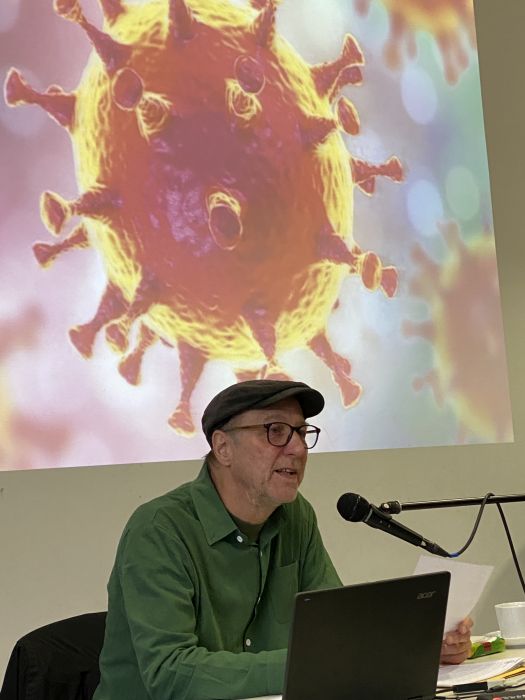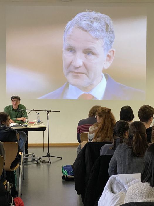 Als Auftakt zum diesjährigen Bundesweiten Vorlesetag kam Thomas Gsella zu zwei Lesungen für die 11. und 12. Jahrgangsstufe zu uns an die Schule. Vor zwei Jahren hatte er schon einmal „coronakonforme“ Lesungen in „Kleingruppen“ gehalten. Und auch dieses Jahr war Corona noch ein Thema in seinen Texten. Die „Corona-Lehre“ ist ja mittlerweile sein wohl bekanntestes Gedicht, das tausendfach geliket und geteilt wurde. Ansonsten trug er viele neue Texte vor und stellte seinen Vortrag ganz neu zusammen. Im Sinne seiner „Personenkontrolle. Leute von heute in lichten Gedichten“ rechnete er in seiner satirischen Lyrik mit bestimmten Personen des öffentlichen Lebens ab. Dabei sieht der Autor sich als poltischer Dichter, der häufig allzu konservative und vor allem rechte Auffassungen kritisiert. In einem Nebensatz sagte Gsella schmunzelnd, rechte Satiriker kenne er keine, solche könne es auch eigentlich gar nicht geben.