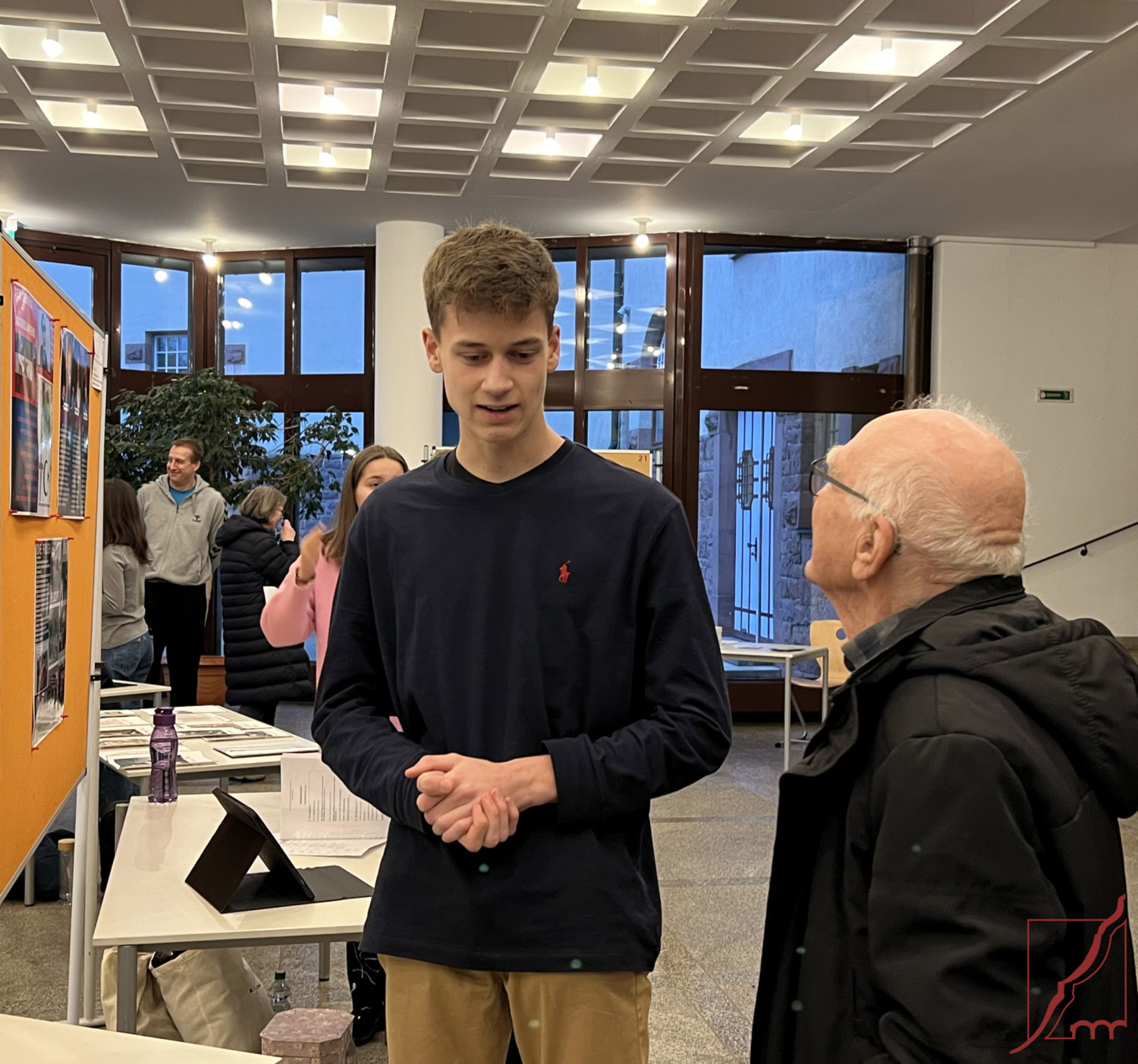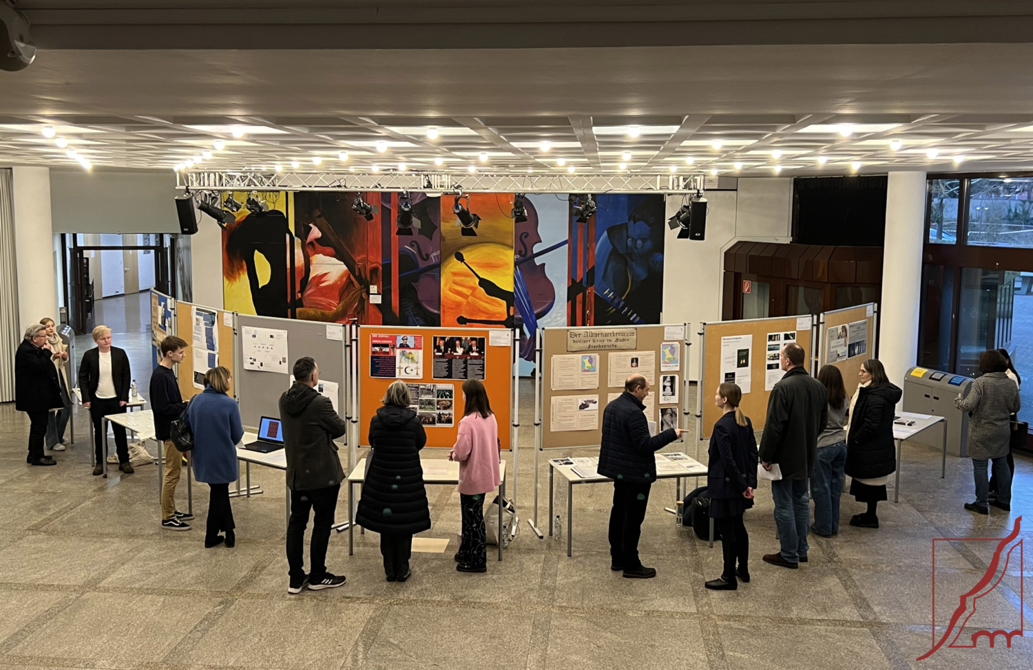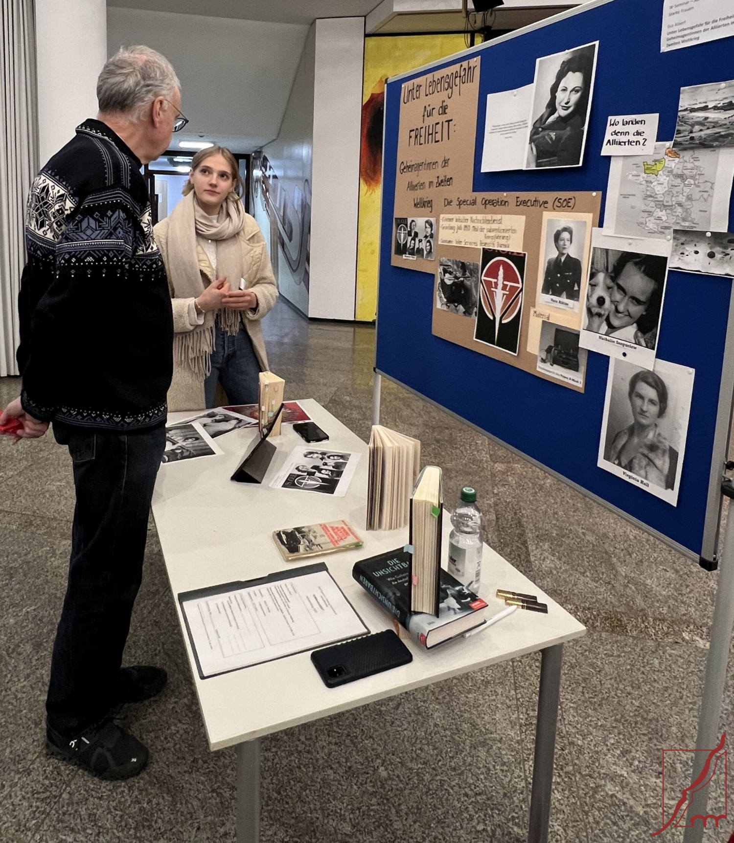 Bereits zum 14. Mal veranstaltete der Förderverein die „Seminararbeitsmesse“ am 13. Januar in der Aula unserer Schule. Sieben Schüler*innen der Q12 präsentierten ihre W-Seminararbeiten. Diese erste wissenschaftliche Arbeit über Monate hinweg am heimischen Schreibtisch zu verfassen, stellt schon eine Herausforderung dar, diese aber einer breiten Öffentlichkeit zu präsentieren und Rede und Antwort zu stehen, gebührt allen Respekt. Mit großem Engagement erklärten die Schüler*innen ihre Arbeit, ließen die Besucher an der Entstehungsgeschichte teilhaben oder nahmen sie mit in die Welt des Geschehens. Sehr authentisch beantworteten sie mit beeindruckender Sachkompetenz, Ausdauer und Geduld die vielen Fragen der interessierten Gäste.