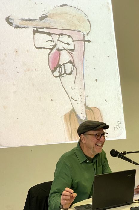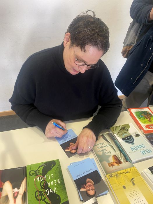 Nachdem ein Jahr zuvor Peter Freudenberger zum Auftakt des Bundesweiten Vorlesetags vor der elften und zwölften Jahrgangsstufe aus seinen regionalen Krimis gelesen hatte, stellte im November 2023 mit Thomas Gsella ein weiterer „Lokalmatador“ seine Werke vor. Im Sinne seiner „Personenkontrolle. Leute von heute in lichten Gedichten“ rechnete er in seiner satirischen Lyrik mit bestimmten Personen des öffentlichen Lebens ab. Er prangerte negative Entwicklungen und Ungerechtigkeiten an, beschäftigte sich in seinen Texten aber auch augenzwinkernd mit dem ganz normalen Leben. Zum Schluss der Autorenbegegnung wurden die Schüler dann selbst produktiv und schrieben eigene Texte.