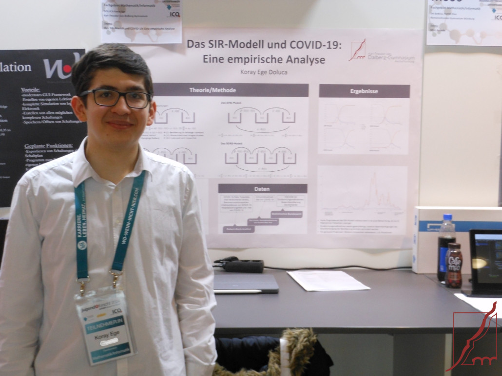 Weitere 2. Preise erhielten Koray Ege Doluca (Q12) in der Alterssparte „Jugend forscht“ mit seinem Projekt „Das SIR-Modell und COVID-19: Eine empirische Analyse“ im Fachgebiet Mathematik, Yuri Yokota Beilke und Tim Lautenschläger (beide Klasse 6c) für ihre „Untersuchung der Wärmedurchlässigkeit verschiedener Fensterscheiben“ im Fachgebiet Physik, Alterssparte „Schüler experimentieren“ sowie ebenfalls in dieser Alterssparte Yüejün Wang und Elias Hans (beide Klasse 5a) mit dem „Intelligenten Dachfenster“ im Fachgebiet Technik. Für Koray und Yuri war es in diesem Jahr die zweite Teilnahme.
