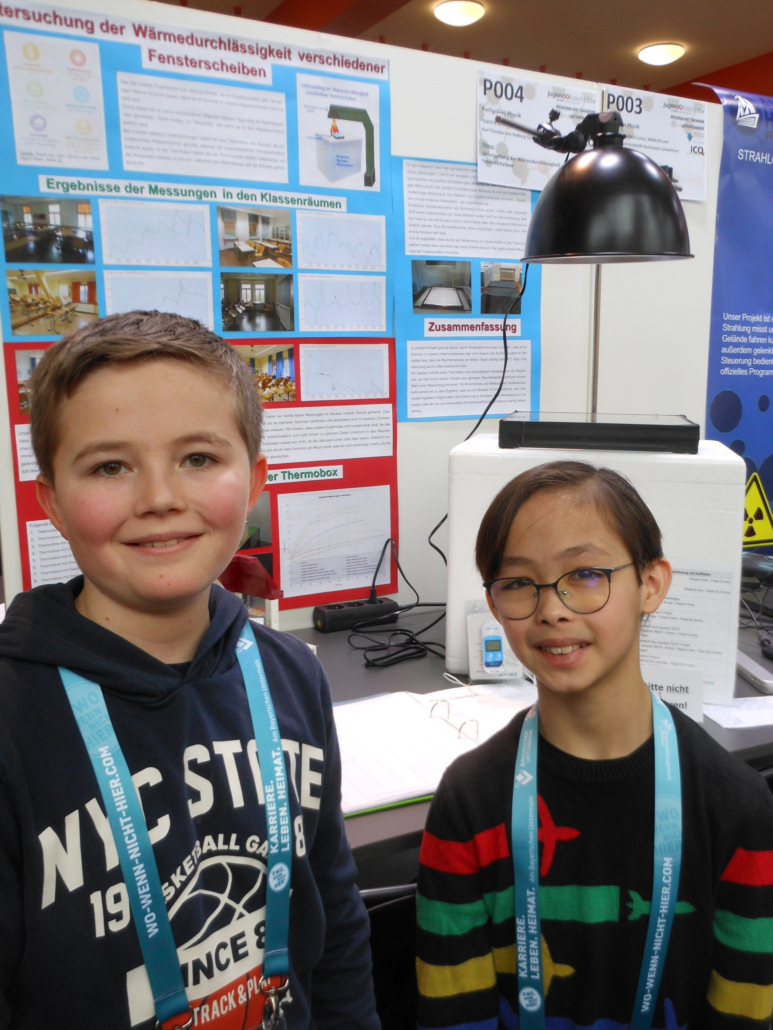 Jan Schlottbom und Lilly Lautenschläger (beide Klasse 7a) präsentierten im Fachgebiet Physik, Alterssparte „Schüler experimentieren“, ihre Ergebnisse zu „Faszinierende Ringwirbel im Wasser und in der Luft“ und wurden von der Jury sehr für ihre Arbeit gelobt. Jan nahm zum zweiten Mal am Wettbewerb teil.