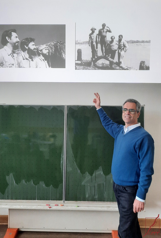 Eine besondere Geschichtsstunde erlebten die Schülerinnen und Schüler der Klasse 7b am 16. April 2024. Dr. Murillo Villela Filho war gekommen, um über die Brüder Villas Bôas zu berichten. Doch wer waren die Brüder Villas Bôas? Orlando, Cláudio und Leonardo Villas Bôas wurden zwischen 1914 und 1918 in Brasilien geboren. Zeit ihres Lebens setzten sie sich für den Schutz indigener Völker ein. Sie unternahmen große Expeditionen und ihrem Einfluss ist es zu verdanken, dass 1961 der Xingu-Nationalpark, das erste große Schutzgebiet indigener Völker in Brasilien, errichtet wurde. Die Brüder wurden vielfach ausgezeichnet. Orlando Villas Bôas erhielt beispielsweise den GEO-Preis 1984 aus den Händen von Willy Brandt und Richard von Weizsäcker. Der Vortrag von Murillo Villela war besonders spannend, da sein Vater die Brüder Villas Bôas bei Expeditionen begleitet hatte und Herr Villela nicht nur Originalfotos der Expeditionen zeigen konnte, sondern auch weil durch seine persönliche Begegnungen mit Orlando Villas Bôas Geschichte plötzlich sehr aktuell und lebendig wurde. Herr Villela berichtete über die Besonderheiten der unterschiedlichen indigenen Stämme, über ihre Traditionen und über ihr Leben im Einklang mit der Natur sowie ihre Begegnung mit den Weißen. So lud Orlando Villas Bôas 1954 einen Häuptling zu den 400-Jahr-Feierlichkeiten der Gründung von São Paulo ein. Eine Besuch bei den indigenen Stämmen durch den Bürgermeister von São Paulo, Jânio da Silva Quadros, schloss sich an. Als da Silva Quadros 1961 Präsident wurde, gründete er den Xingu-Nationalpark, wo bis heute 14 Stämme trotz aller Unterschiede in Frieden miteinander leben. Die Schüler folgten dem Vortrag interessiert und stellten viele Fragen, auch über die Unterdrückung der indigenen Völker. Mit einem symbolischen Bild, das den derzeitigen Präsidenten Lula da Silva mit dem Häuptling Raoni Metuktir sowie Frankreichs Präsidenten Emanuel Macron vor gerade einmal zwei Wochen zeigt, beendete Murillo Villela die spannende Geschichtsstunde. Lula da Silva hatte nicht nur neue Schutzgebiete eingerichtet, sondern auch ein Ministerium für indigene Völker gegründet. So erlebten die Schüler illustriert von vielen historischen Fotos, was das Engagement Einzelner bewirken kann und erhielten einen kleinen Einblick in eine uns wenig bekannte Welt.