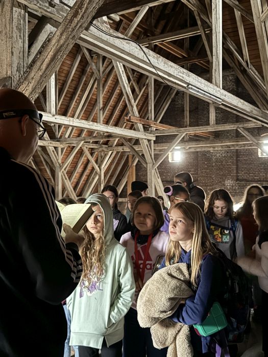 Damit möglichst viele Schülerinnen und Schüler dieselbe Erfahrung machen wie Bastian aus „Die Unendliche Geschichte“ von Michael Ende konnten sie sich am bundesweiten Vorlesetag am 15.11.24 in den Pausen an verschiedenen Orten im Schulhaus spannende Geschichten vorlesen lassen. In der Bibliothek lasen Schüler für Schüler – das Bibliotheksteam hatte sich packende Textstellen ausgesucht. Besonders Wagemutige gingen mit Herrn Michelbach in den Keller, um eine Passage aus „Das fliegende Klassenzimmer“ zu hören. Und wie Bastian aus der „Unendlichen Geschichte“ las Herr Pfeifer aus diesem Kinderbuchklassiker auf dem Dachboden unserer Schule.