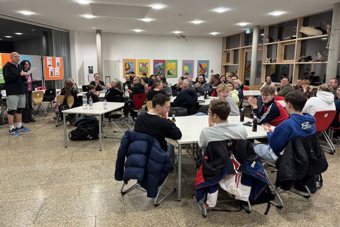 Dank das Caterings durch die 12. Jahrgangsstufe konnten sich den ganzen Tag über die Teilnehmer am Turnier aus verschiedenen Generationen in gemütlicher Runde in der Mensa austauschen. Schön war, dass mit Herrn Hoffmann und Herrn Widmann sich auch ehemalige Lehrkräfte in die Zuschauer mischten und auch ehemalige Schülerinnen und Schüler sich zum Austausch trafen, die nicht aktiv am Turnier teilnahmen.