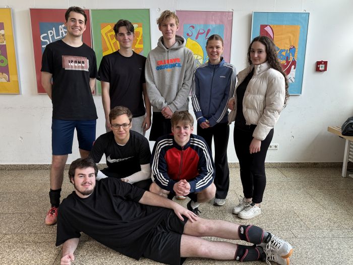 Bei der Siegerehrung in der Cafeteria durften die drei bestplatzierten Mannschaften ihr Preisgeld einer der Schulgruppen zukommen lassen, die sich zuvor um eine Förderung beworben hatten. 150 Euro gehen an den „Stützpunkt Volleyball“ und damit in die Unterstützung der sieben Volleyball-Wettkampfmannschaften, der Sportarbeitsgemeinschaft mit dem TV Aschaffenburg, der schulinternen Volleyballturniere und des Beachvolleyballs am Dalberg-Gymnasium. 100 Euro bekommt das P-Seminar Musical und 50 Euro der im letzten Schuljahr neu gegründete Schulzirkus „Circus Theo d’Or“, der mit seiner Geschichte um das 120 Jahre alte Schulgebäude schon den Auftakt zum diesjährigen Schuljubiläum gemacht hat.