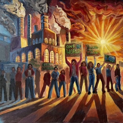 Die Schülerinnen und Schüler der Klassen 8b und 8e erarbeiteten einen Teufelskreis „Alkohol“ der Abhängigkeit. Verschiedene Meinungen wurden mit unterschiedlichen Kreidefarben festgehalten. So entstand ein Netz, das verdeutlicht, wie schwer man daraus entkommen kann.