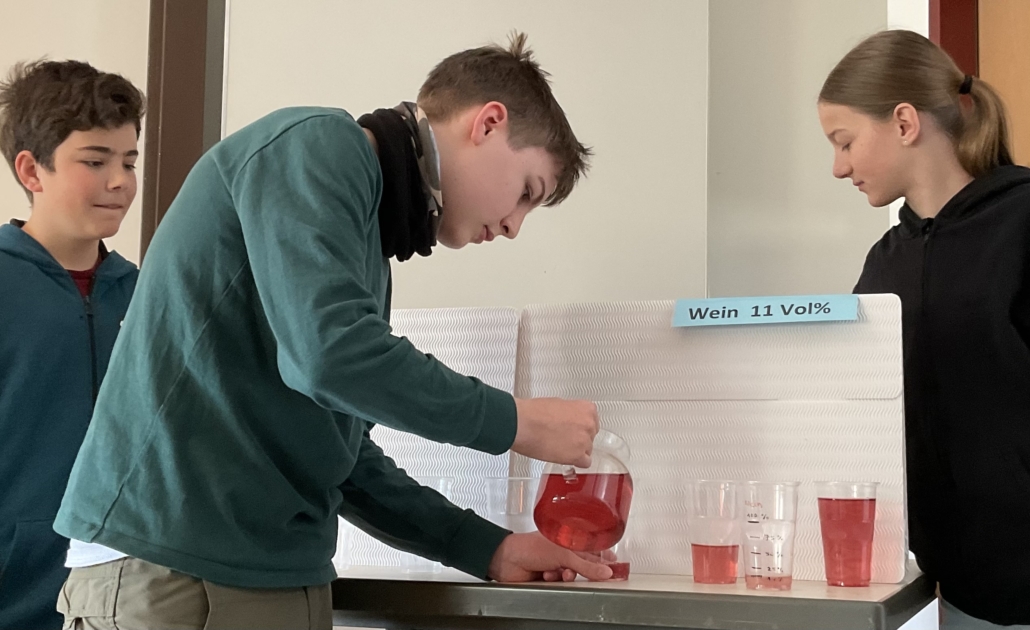 Die Vielzahl der körperlichen Folgen wurde durch Anklammern der Schädigung über betroffenen Körperstellen verbildlicht. Welche Menge Alkohol sich in bestimmten Getränken tatsächlich befindet, wurde mit der zuvor geschätzten Menge verglichen.