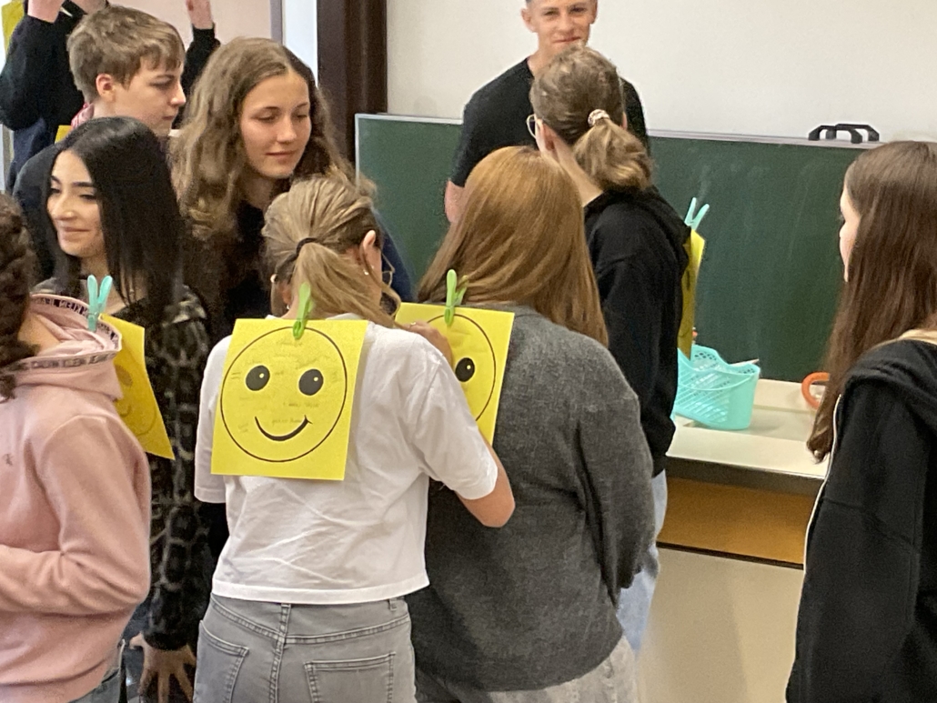 Und schließlich sollten neben den negativen Aspekten alternative Möglichkeiten aufgezeigt werden. Jeder konnte außer einem Rezeptheft für alkoholfreie Getränke mit einem Smilie nach Hause gehen. Auf ihm hatten Mitschüler festgehalten, was sie an ihren Mitschülerinnen und Mitschülern ganz besonders gern mögen und wertschätzen. Ein kleiner Beitrag zur „Ich-Stärkung“.