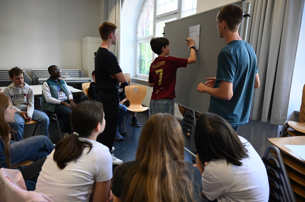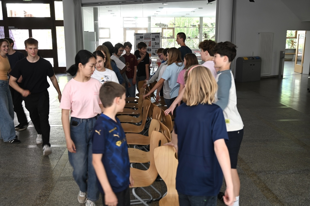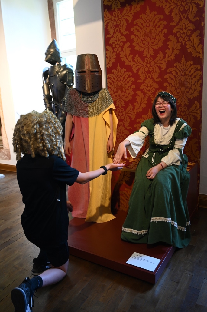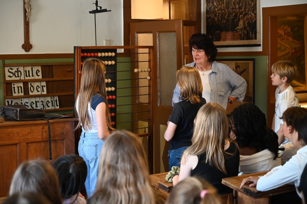 Gerade aber ist am 16. Mai erst der Besuch der Franzosen bei uns zu Ende gegangen. Während diesem stand neben den zentralen Erfahrungen in den Gastfamilien und im Unterricht Folgendes auf dem Programm: Empfang mit Kuchen und Getränken (Vielen Dank an die engagierten Eltern!), Stadtrallye sowie Besuch des Schlosses und des Pompejanums, Projektzeit mit Spielen (Herzlichen Dank an die Schüler und Schülerinnen aus der AbiBac-Klasse!), ein binationaler Ausflug nach Lohr mit seiner hübschen Altstadt sowie einer Unterrichtsstunde, wie sie im Jahr 1900 üblich war, und interessanten und lustigen Führungen im Spessartmuseum, ein Besuch der französischen Gruppe in Frankfurt und nach einem weiteren Unterrichtsbesuch am Freitag die Rückfahrt nach Frankreich.
