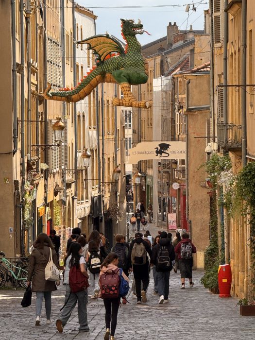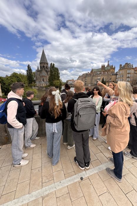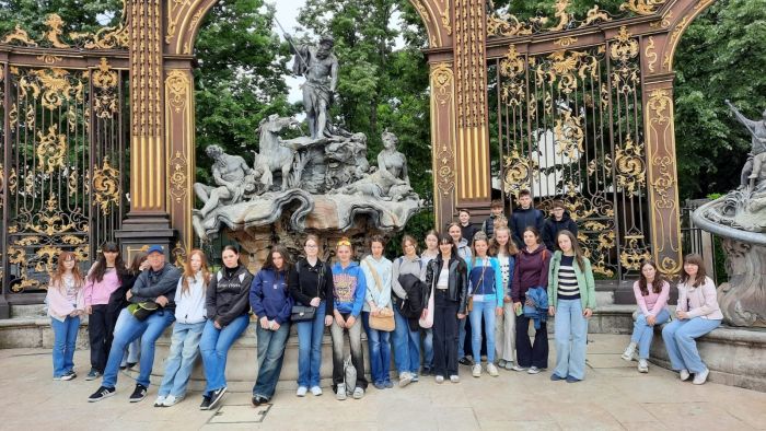 Nachdem wir am Montag, dem 5. Mai, in unserer Jugendherberge in Metz angekommen waren, erkundeten wir gleich die Stadt mit einer Rallye und besichtigten die berühmte Kathedrale, bevor wir den Abend mit Musik, Sport und Spielen im Garten der Herberge direkt am Ufer der Mosel ausklingen ließen. Am nächsten Tag hieß es früh aufstehen, denn direkt nach dem petit déjeuner machten wir uns mit dem Bus auf den Weg nach Nancy.