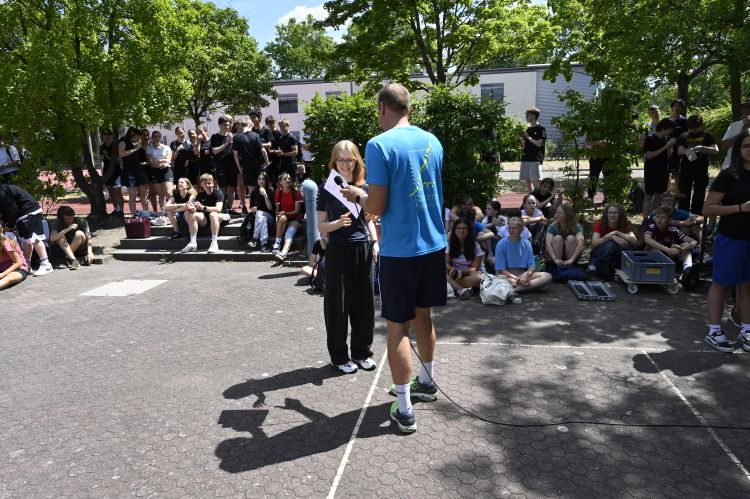 Nach der Hitzewelle der vergangenen Tage konnten wir uns pünktlich zum Sportfest am 4. Juli über eine gehörige Abkühlung freuen. Nach alter Tradition maßen sich die Schülerinnen und Schüler der Unterstufe in den traditionellen Disziplinen der Leichtathletik, um dann am Ende im großen Staffelfinale gegen die anderen Klassen des eigenen Jahrgangs anzutreten.