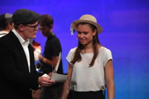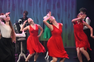 Die mehr als 500 Zuschauerinnen und Zuschauer der beiden Vorstellungen bekamen aber noch eine ganze Reihe weiterer Geschichten in Schauspiel und Gesangsstücken präsentiert. Da ist zum Beispiel die Schülerin Frieda, die sich ihrem arg aufdringlichen Tanzpartner Hans zu entziehen versucht und sich schließlich zu einer gleichgeschlechtlichen Beziehung mit ihrer Mitschülerin Maggie bekennt. Josefine hat es dagegen satt, die Aufpasserin für ihre große Schwester Eleonore zu spielen, die lieber Model oder Schauspielerin sein möchte, als nach dem Willen ihrer Eltern Medizin zu studieren.