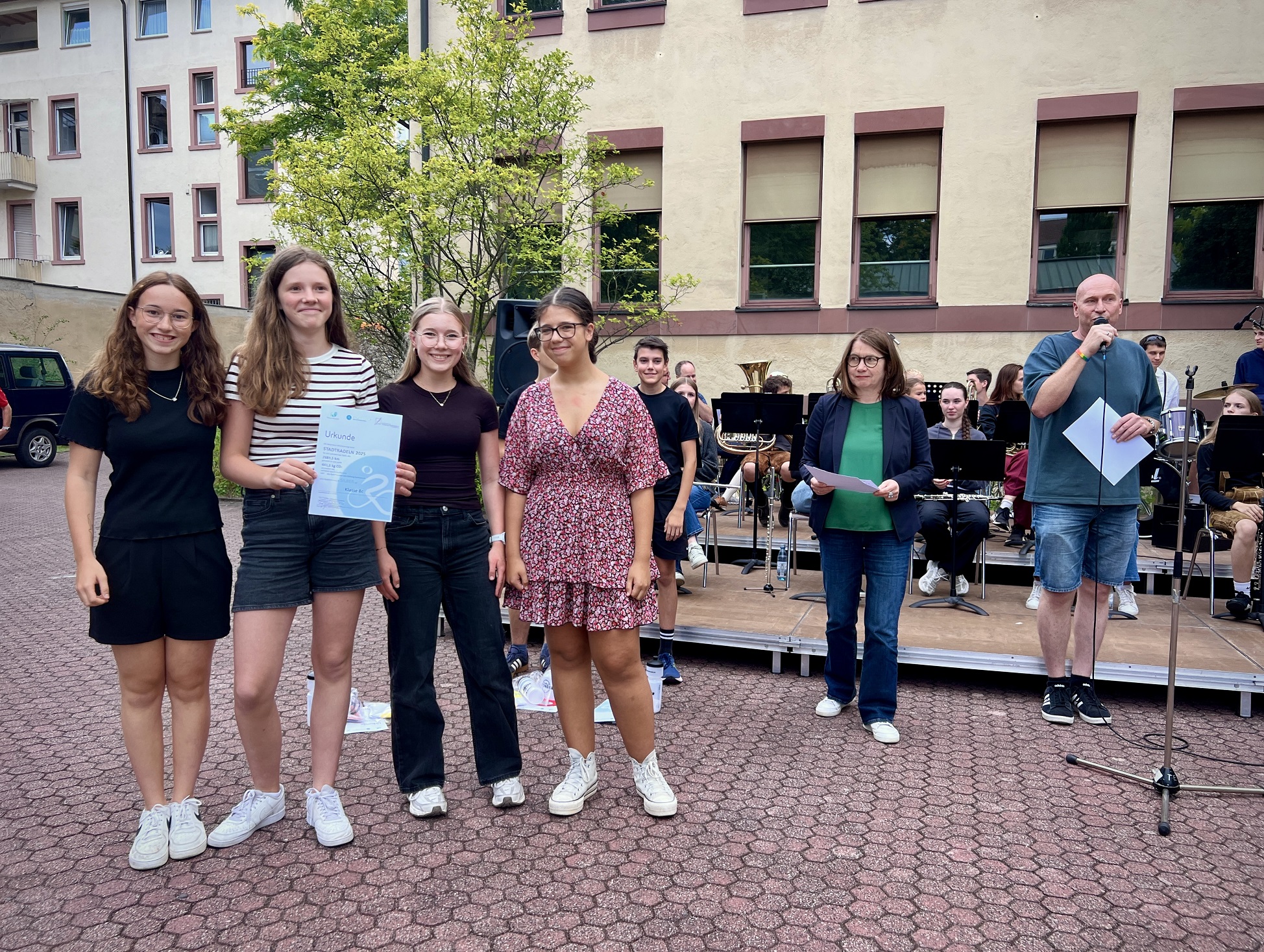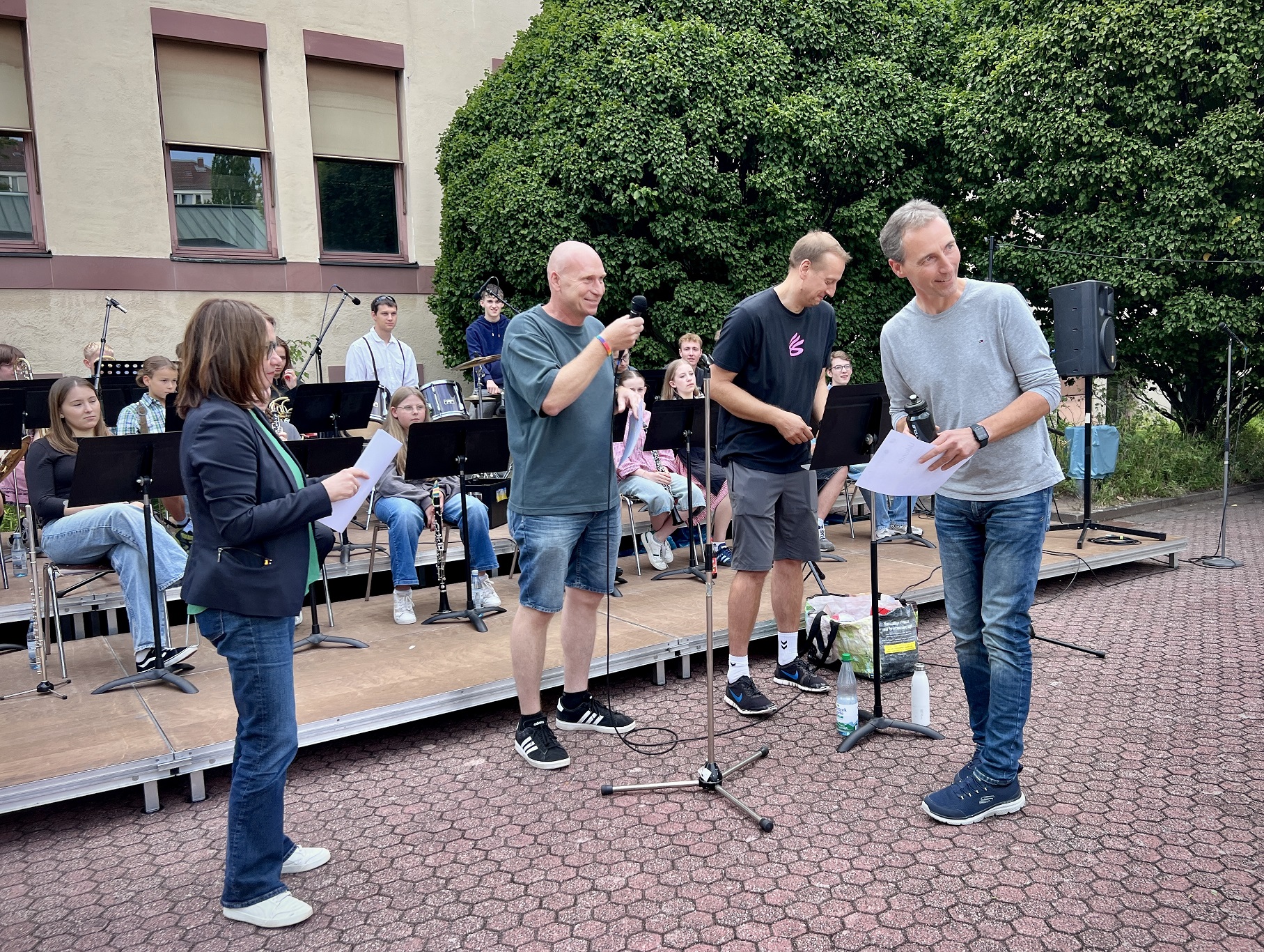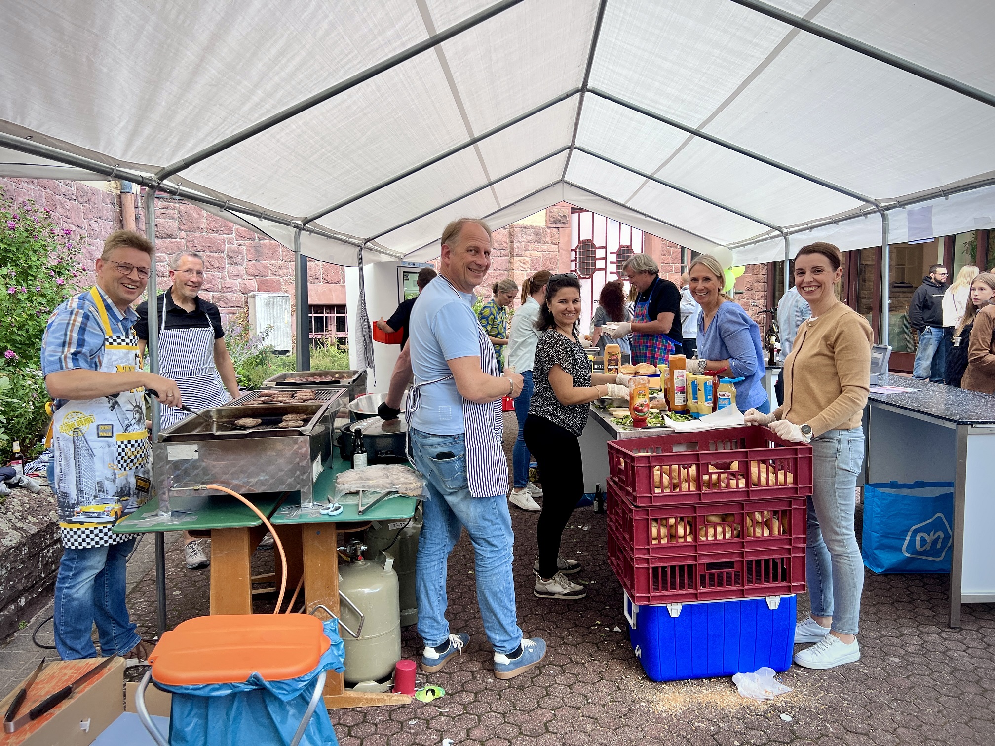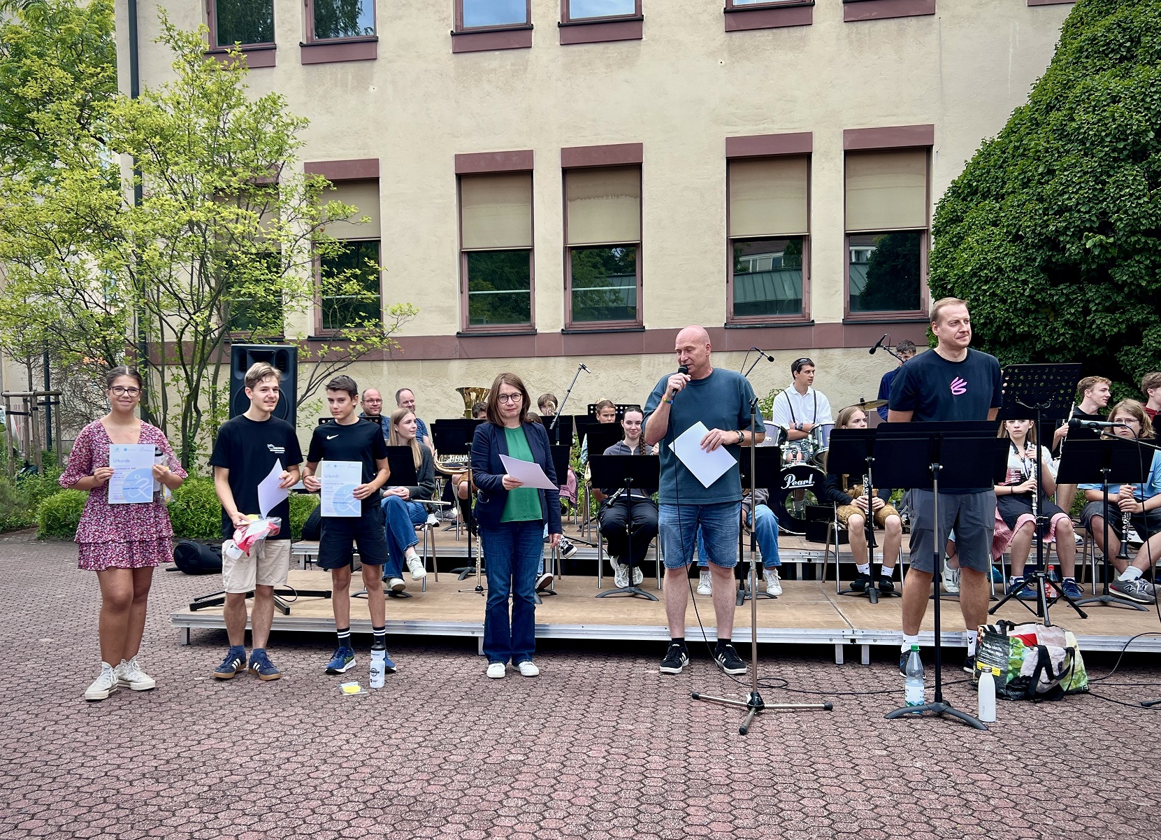 Ab 18.00 Uhr öffnete sich das Schulfest auch für Ehemalige und Freunde des Dalberg-Gymnasiums. Auf dem Pausenhof bewirtete uns der Elternbeirat. Musikalisch umrahmt wurde der Abend von der Lehrerband, unserer Blaskapelle „Karl-Theodors Böhmische“ und Schülerbands.