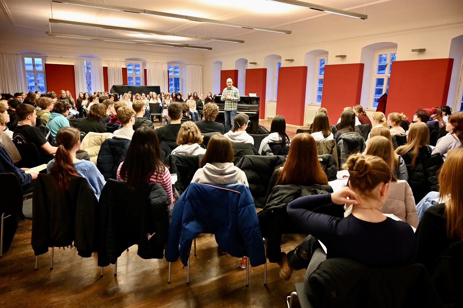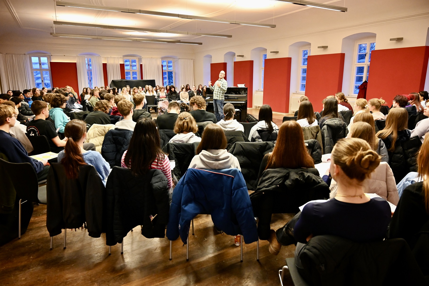 Vom 27. bis 30. Januar 2026 verbrachten rund 200 Schülerinnen und Schüler des Karl-Theodor-von-Dalberg-Gymnasiums intensive Musikprobentage an der Musikakademie Schloss Weikersheim im Taubertal. Die Sängerinnen und Sänger probten im Gewehrhaus vor dem Schloss, während das Große Orchester in der Tauberphilharmonie arbeitete.