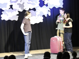 Eine Flucht ist keine Luxusreise. Wer flüchten muss, kann sich nicht einfach ein Flugticket kaufen und bequem in ein anderes Land reisen. Was es bedeutet, sein Land, seine Heimat, seine Stadt, seine Wohnung, sein Zimmer aufgeben zu müssen, Freunde und Verwandte zurückzulassen und vielleicht nie wiederzusehen – das kann sich vermutlich nur vorstellen, wer es selbst durchleben musste. Trotzdem haben die 26 Schülerinnen und Schüler der Theatergruppe mit ihrem Stück den Versuch unternommen, der Situation von flüchtenden Menschen näherzukommen. Natürlich ist es weder möglich noch sinnvoll, die Lebenssituation Geflüchteter und ihre oft traumatischen  Erfahrungen auf der Theaterbühne zur Schau zu stellen. Was aber möglich ist: Geflüchtete nicht als „Problem“ abzustempeln, sondern als unsere Mitmenschen zu begreifen und sich ernsthaft und mitfühlend mit ihren Erfahrungen auseinanderzusetzen. Denn Flucht ist eine universelle Erfahrung und kann bedauerlicherweise jede und jeden treffen.