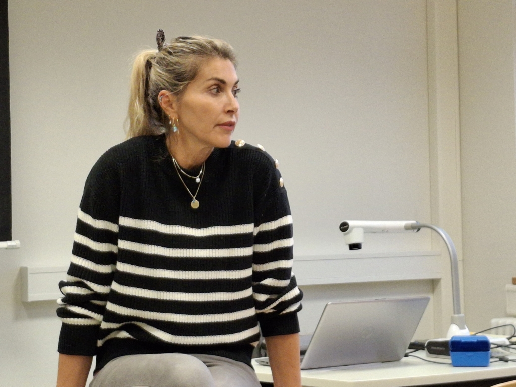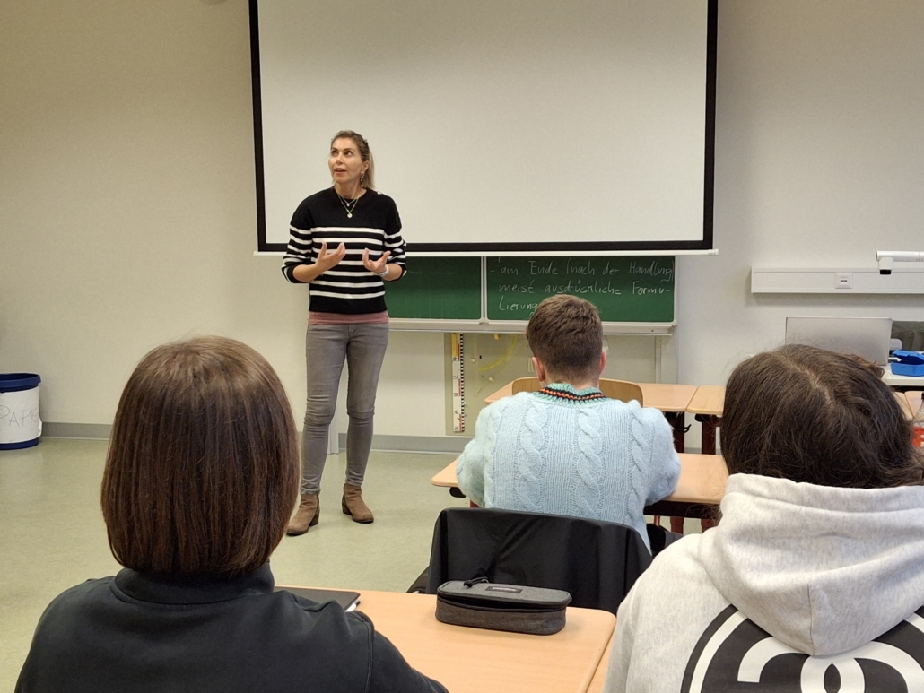 Die deutsch-syrische Ärztin Abir Mangels im Gespräch mit Teilnehmern des W-Seminars „Flucht und Vertreibung“ über den syrischen Bürgerkrieg, das Leben in Flüchtlingslagern sowie die Integration in Deutschland.