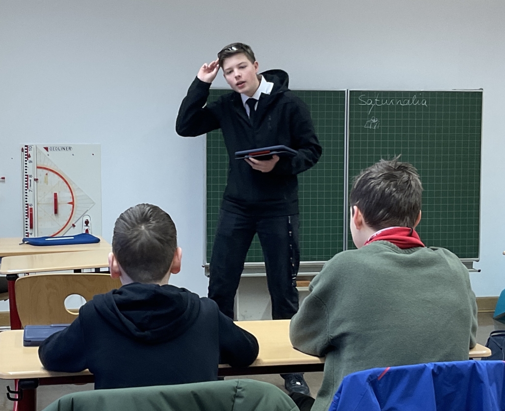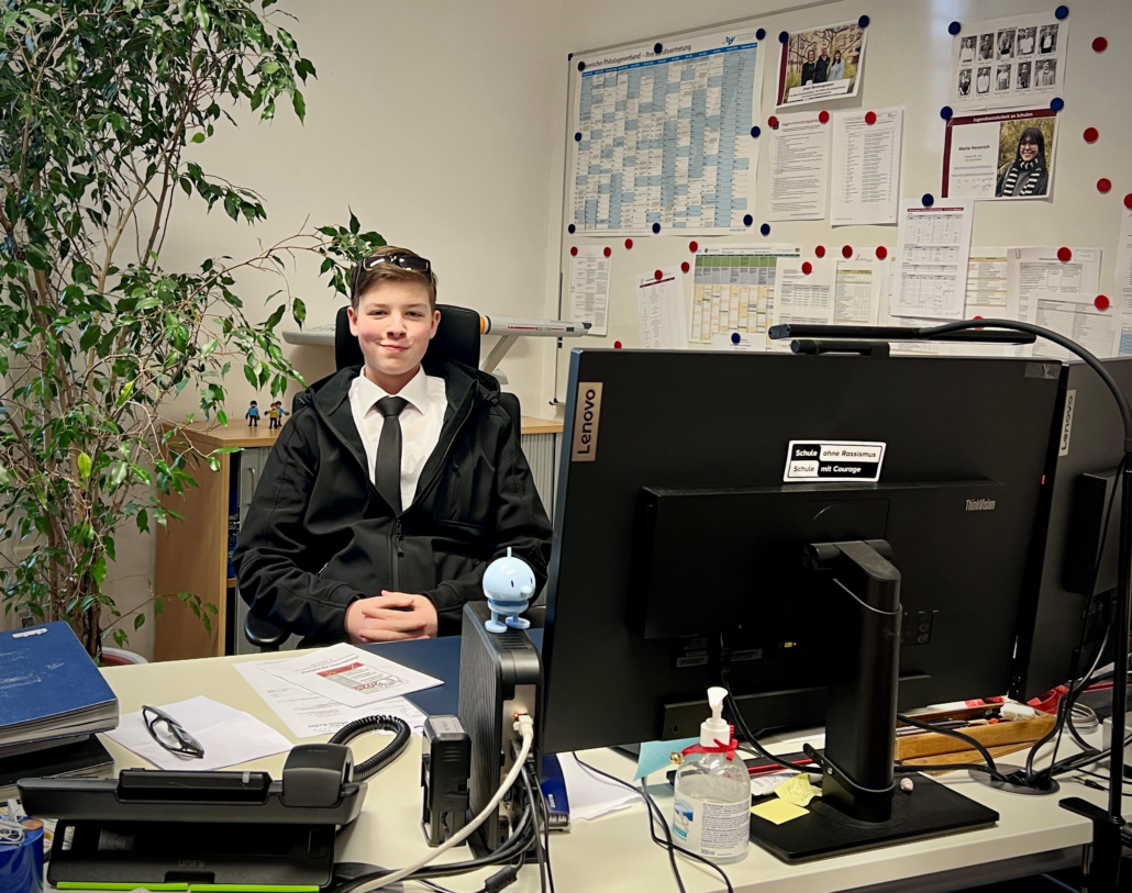 Im Rahmen der Motto-Woche vor den Faschingsferien schlüpfte auch ein Schüler aus der 8. Klasse in der Rolle eines Lehrers. Mit ein bisschen Fantasie erkennt man auch mit wem die Rollen getauscht wurden. 😉