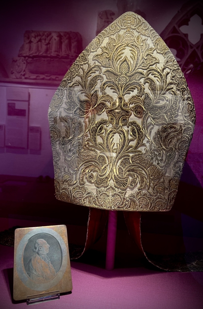 - Mitra Dalbergs (Anfang 19. Jahrhundert) – Metallstickerei aus Gold- und Silberfäden und Pailletten auf mit Silberfäden durchwirkter Seide