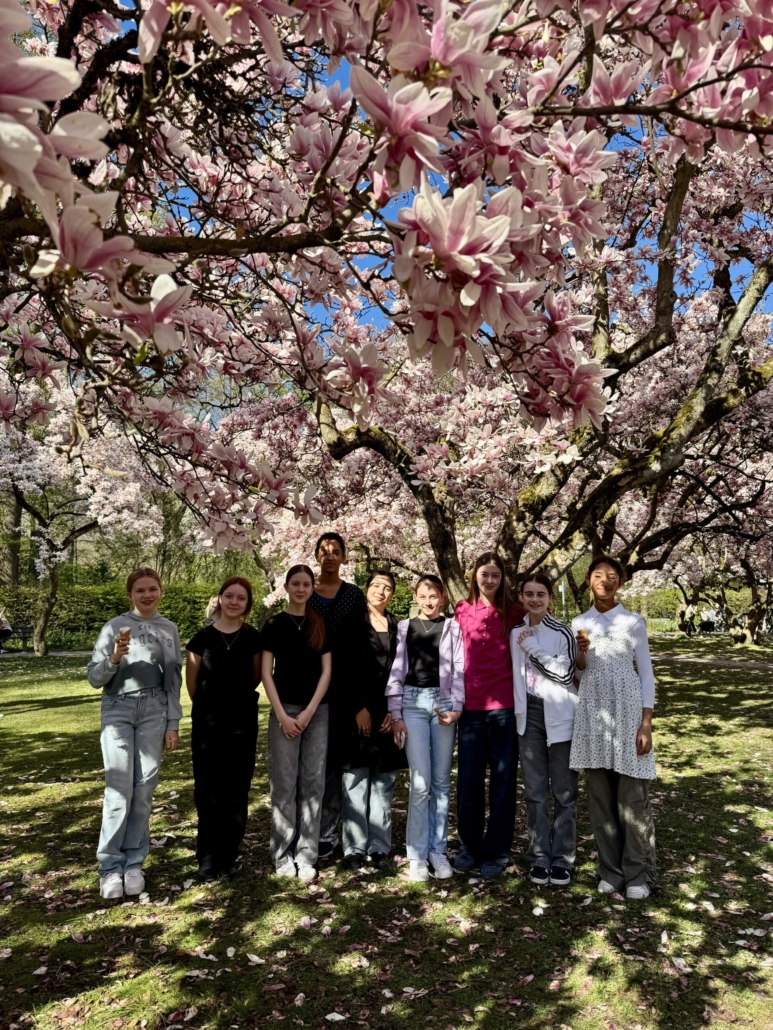 Die Tänzerinnen der Tanzgruppe der 7. Klassen begrüßten nach dem Training unter den Magnolien im Park Schöntal mit einem Eis den Frühling. Dies war eine kleine Belohnung für den Einsatz beim Bezirksfinale der Schulen in Unterfranken.