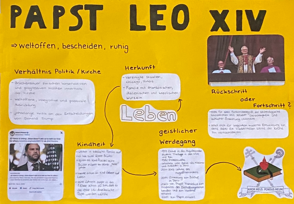 Schülerinnen und Schüler der 11. Jahrgangsstufe beschäftigten sich im Rahmen des katholischen Religionsunterrichts mit der Wahl des neuen Papstes.
