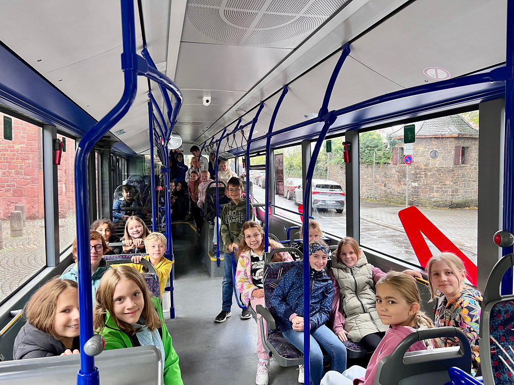 Auch in diesem Schuljahr wurde mit den Schülerinnen und Schülern das richtige Verhalten im Schulbus geübt. Nach einer Theoriestunde mit Film durften die Fünftklässler das richtige Verhalten im Bus trainieren: Ein- und Aussteigen, die Sicherheitseinrichtungen, und die Vollbremsung zeigte eindrucksvoll, wie wichtig das richtige Hinsetzen und Festhalten sind.
