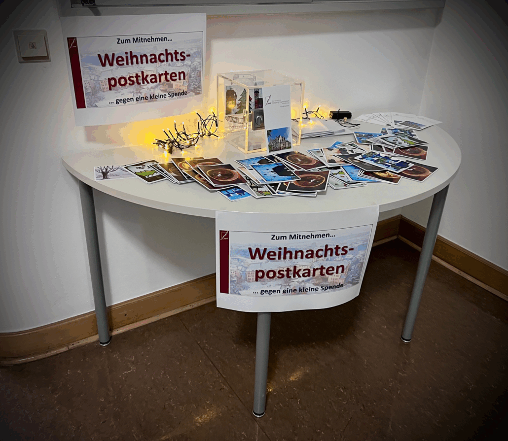 Weihnachtspostkarten – gegen eine kleine Spende – zum Mitnehmen