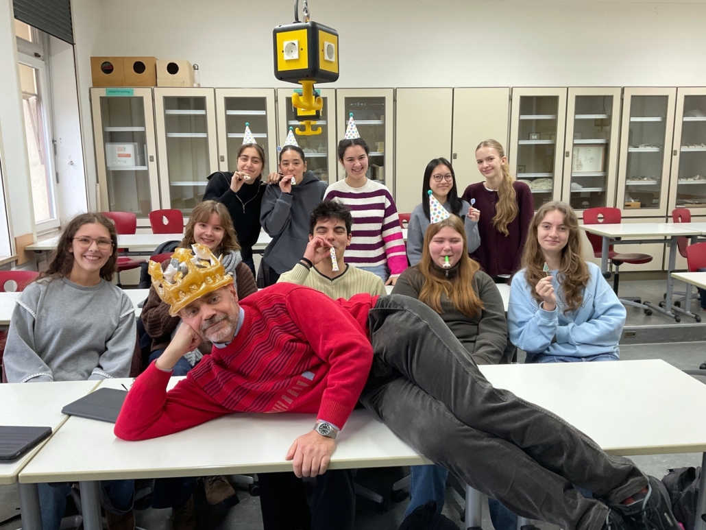 Schülerinnen und Schüler begrüßten Herrn Stahl nach einer Woche ohne Bio mit einer kleinen Party.