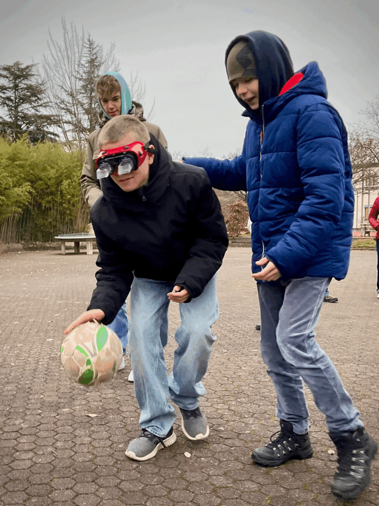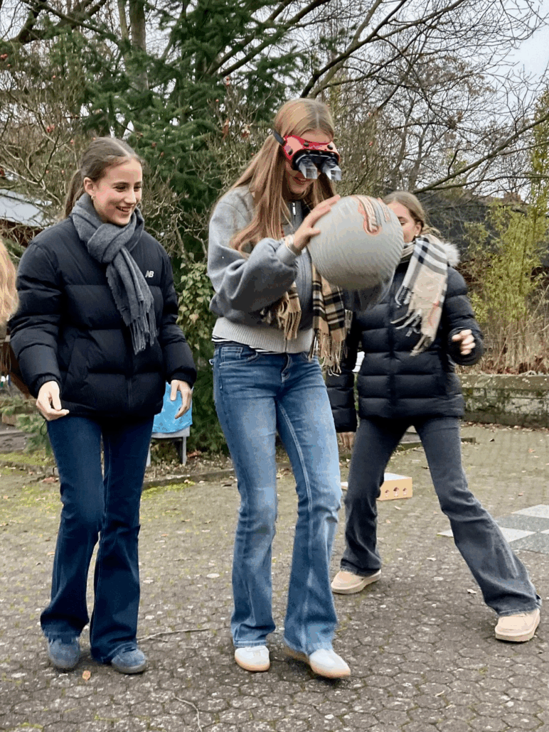 Das testeten die Klassen 8a und 8c in einem Parcours. „Schutzengel“ standen verlässlich zur Seite, so dass niemand fallen konnte.