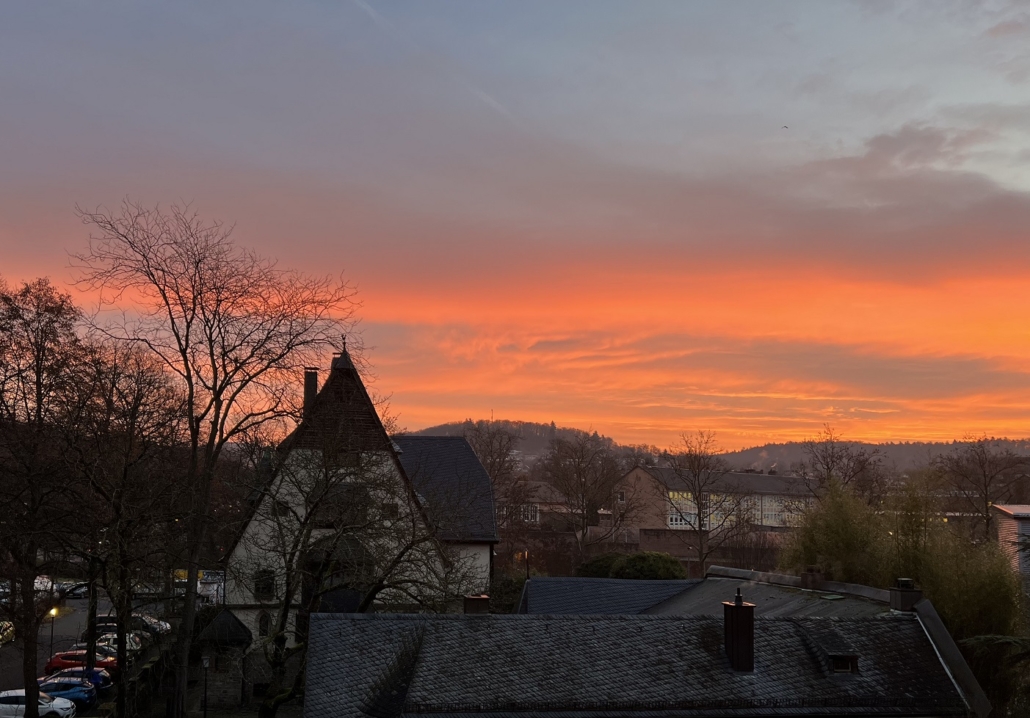 in allen Häusern glänzten Christbäume. Martin blieb stehen und zeigte zum Himmel hinauf. […] Und gerade in diesem Augenblick löste sich eine Sternschnuppe vom Dunkel der Nacht los und glitt schweigend über den Himmel, hinab zum Horizont. Der Junge dachte: >Jetzt kann man sich etwas wünschen!<«