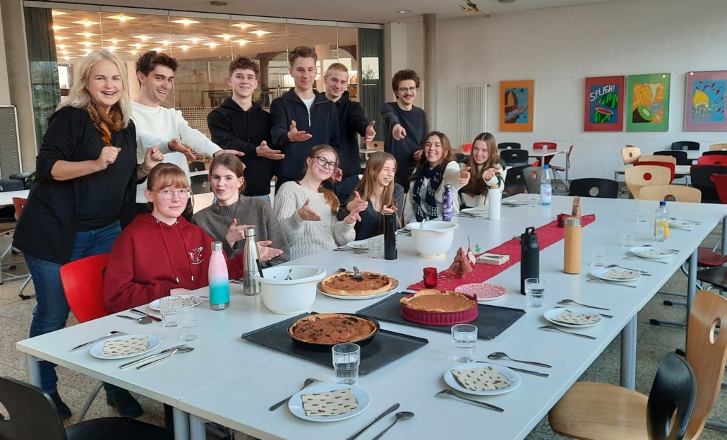 Weihnachtsfeier des Q12-Kurses Französisch (AbiBac) mit selbst zubereiteter Quiche und Mousse au Chocolat. C’était délicieux!