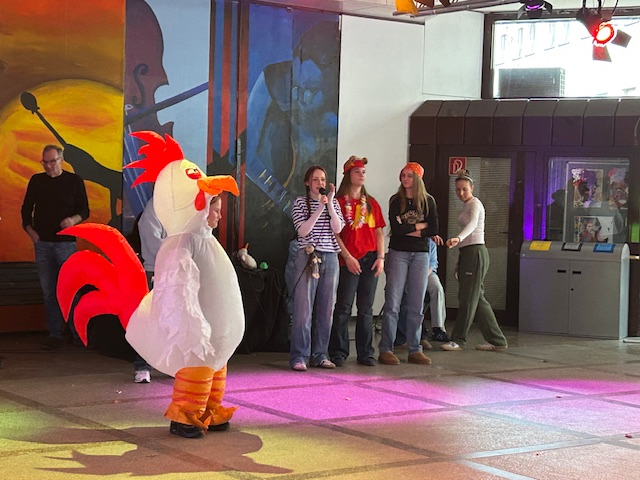 Am Freitag fand der jährliche Unterstufenfasching statt und sorgte für ausgelassene Stimmung und viele fröhliche Gesichter in der Aula. Mit viel Einsatz unterstützten die Scouts und das Technikteam die Feier und schuf mit Licht und Musik die passende Atmosphäre. Für das leibliche Wohl war ebenfalls bestens gesorgt: Ältere Schülerinnen und Schüler verwöhnten die Gäste mit Waffeln, Crêpes und Kuchen. Eine rundum gelungene Party für unsere Unterstufe!