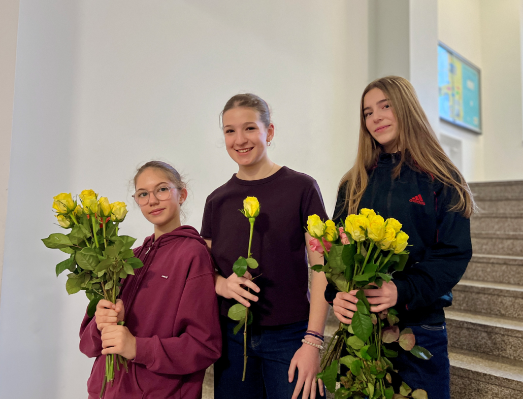 Wie jedes Jahr konnten im Vorfeld Rosengrüße bestellt und am Tag vor dem Valentinstag persönlich überreicht werden. Ob als Zeichen der Freundschaft, der Wertschätzung oder der Zuneigung – die Rosen sorgten in vielen Klassenzimmern für strahlende Gesichter.