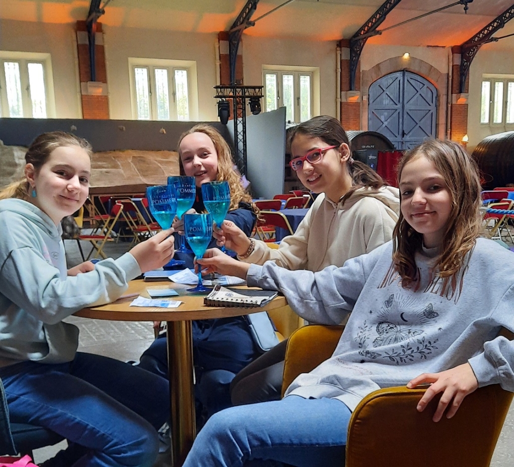 Les classes 6c et 6d envoient un grand bonjour de leur échange avec le collège Saint-André à Reims. Aujourd’hui, dégustation de champagne chez Pommery. Santé !