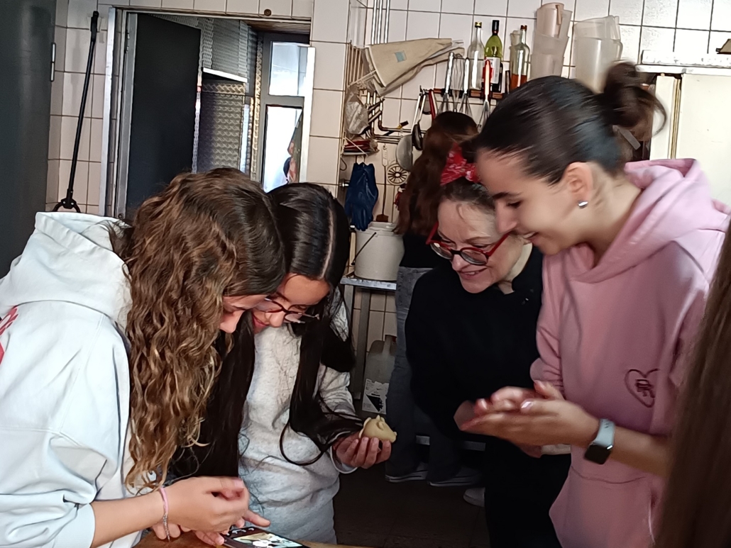 Die spanischen Austauschschülerinnen und -schüler bei ihrem Marzipanworkshop in Obernburg bei der Bäckerei Braunwarth.