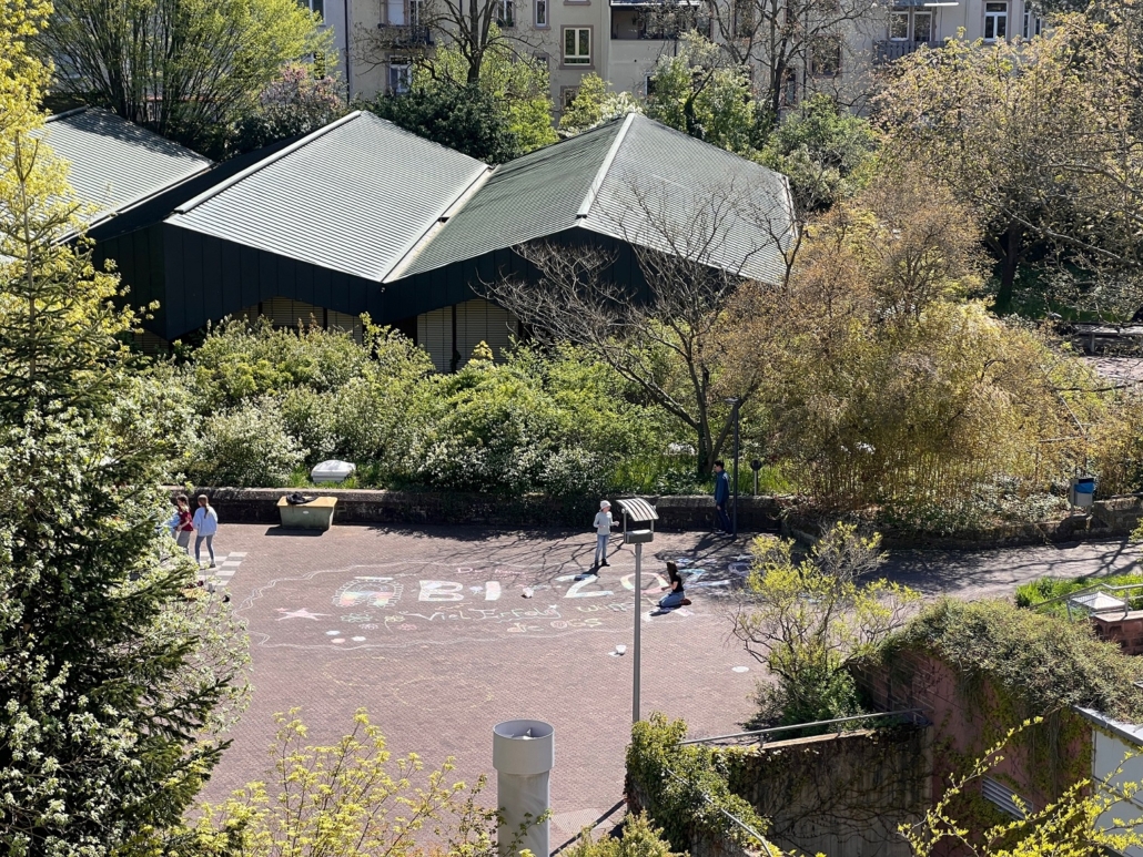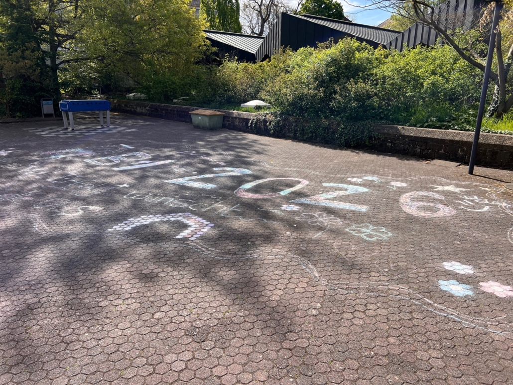 Die Kinder der OGS schreiben ihren Gruß auf den Pausenhof!