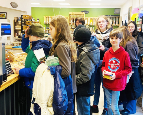 Wie man wirklich nachhaltig einkaufen kann, erfuhren wir – die Schülerinnen und Schüler der 6. Klassen – bei ADAM FAIRkaufen, dem Laden für „bewusstes Einkaufen“ in der Breslauer Straße 28.