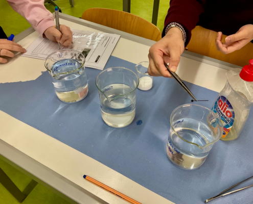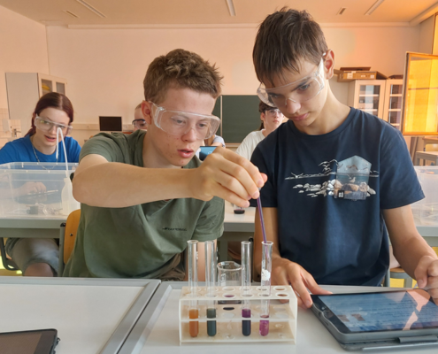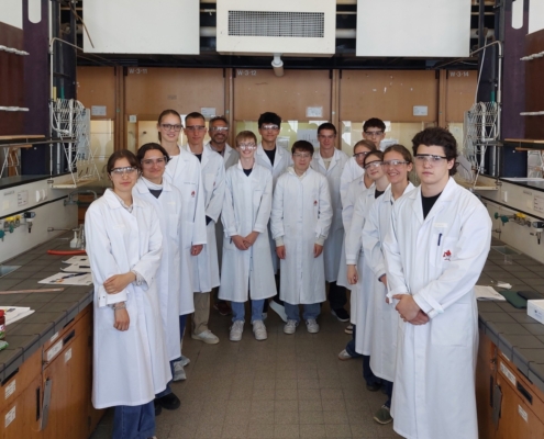 Am 17.07.2025 besuchten das P-Seminar Chemie und der Biochemie-Kurs der 11. Jahrgangsstufe die Universität in Würzburg, um dort im Labor spannende Versuche zu Lebensmittelzusatzstoffen durchzuführen.