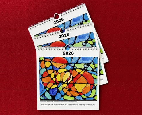 Kalender 2026 mit Kunstwerken von Schülerinnen und Schülern des Dalberg-Gymnasiums