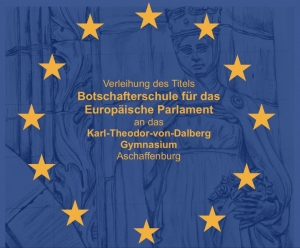 Das Dalberg-Gymnasium ist Botschafterschule für das Europäische Parlament. Die Freude war groß, als das Dalberg-Gymnasium die Nachricht erhielt, dass es eine Botschafterschule für das Europäische Parlament wird. Die JuniorbotschafterInnen (SchülerInnen der Jahrgangsstufen 10 bis 12) sowie die beiden SeniorbotschafterInnen Anja Roßmann und Dr. Martin Trageser hatten im Zuge der Bewerbung verschiedene Aktionen an der Schule durchgeführt (zum Beispiel eine kulinarische Europawoche in der Mensa, ein EU-Theaterstück, verschiedene Vorträge, eine Weihnachtsfeier, bei der verschiedene europäische Traditionen näher betrachtet wurden) sowie an Veranstaltungen in Frankfurt, München und Brüssel teilgenommen.