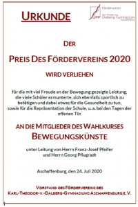 Preis des Fördervereins 2020