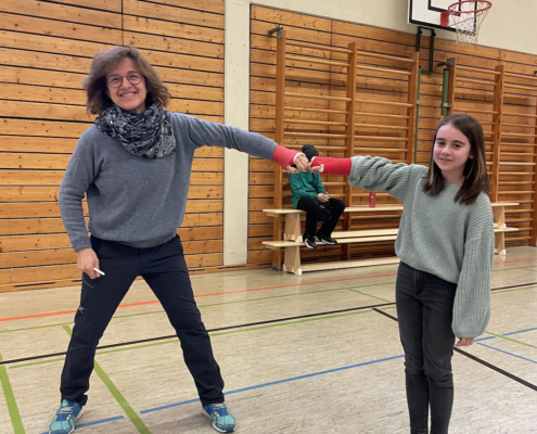 Beim Zirkusworkshop am 21. Januar gab es wieder viel zu erleben und zu erlernen. Zu Gast war dieses Mal eine Gruppe der Brentano-Mittelschule mit den beiden Lehrkräften, die dort die Zirkus AG unterrichten. Beim gemeinsamen Aufwärmen kam man sich sofort näher. Dann durften die Schüler*innen verschiedene Disziplinen und Aufgaben ausprobieren.
